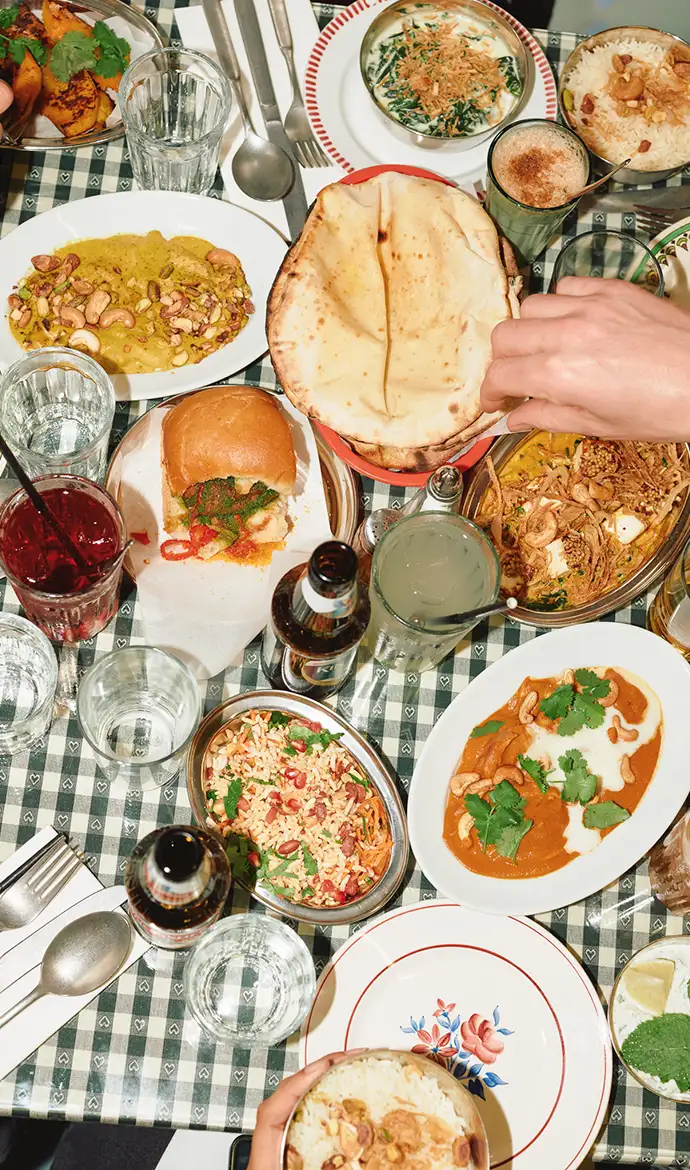 अत्र भारतीयगृहपाकं शाकाहारी-शाकाहारी-अनुकूल-व्यञ्जनेषु व्यक्तं भवति, यत् भारतस्य प्रमुखनगरेभ्यः प्रेरितैः ताजाभिः, ऋतु-उत्पादैः निर्मितं भवति वीथिभोजनात् करीपर्यन्तं प्रत्येकं व्यञ्जनं प्रामाणिकं, आधुनिकं, सुलभं च भोजनं प्रतिबिम्बयति ।